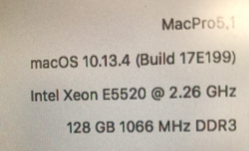 2009年に購入したMac Pro (Early 2009) オクタコア2.26GHz (Intel Xeon 2.26GHz x 2)。販売されてからもう9年前になってしまうんですね〜。最近、ふとシステムレポートを見ると10GBメモリーを積んでいたはずなのですが、2GBのメモリー1枚がいつのまにか死んでいるようで、8GBしかありませんでした。。
